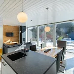 Il y a une cuisine complète, qui comprend un micro-ondes, une bouilloire électrique et un réfrigérateur pour répondre aux besoins des clients. Vous pourrez vous détendre sur une terrasse avec vue sur les montagnes.